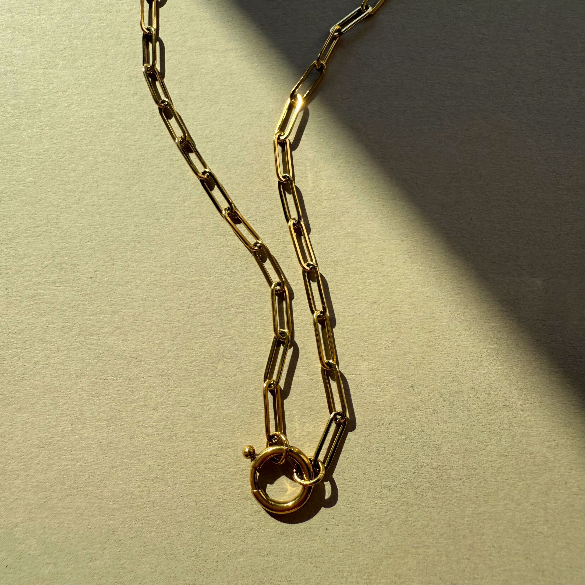 Meet the Brooke Necklace. A modern heirloom designed to carry your most meaningful treasures. Its classic cable chain is both timeless and bold, while the statement clasp takes centre stage, not just as a striking focal point, but as a functional feature made to hold what matters most.