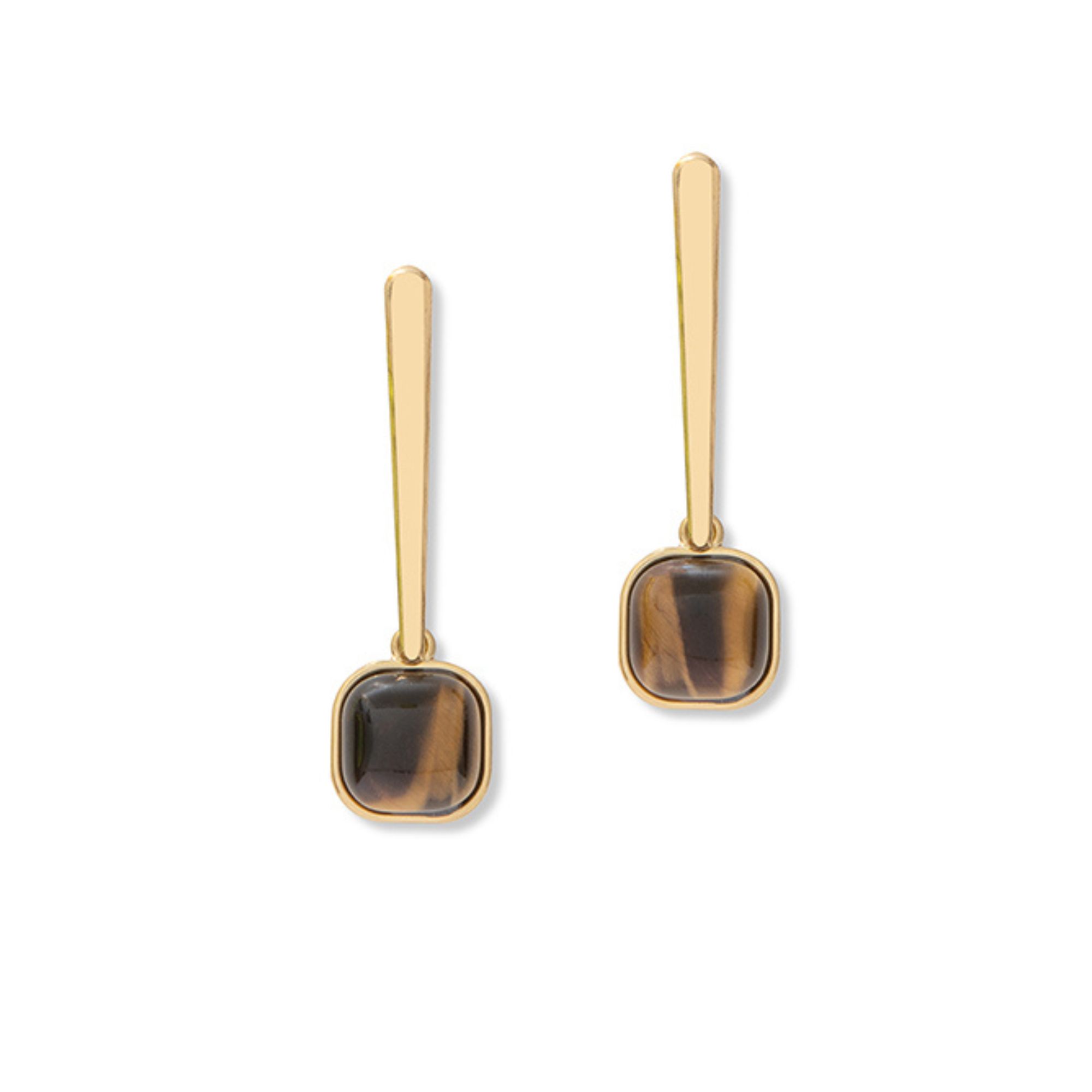 Crafted with gold-plated stainless steel, the Bruna Studs offer a lightweight, elongated silhouette measuring 3.5cm in length and the Tigers Eye charm is 14mm. Their minimalist bar design flows into a softly rounded Tiger’s Eye charm, creating a perfect balance of elegance and edge.