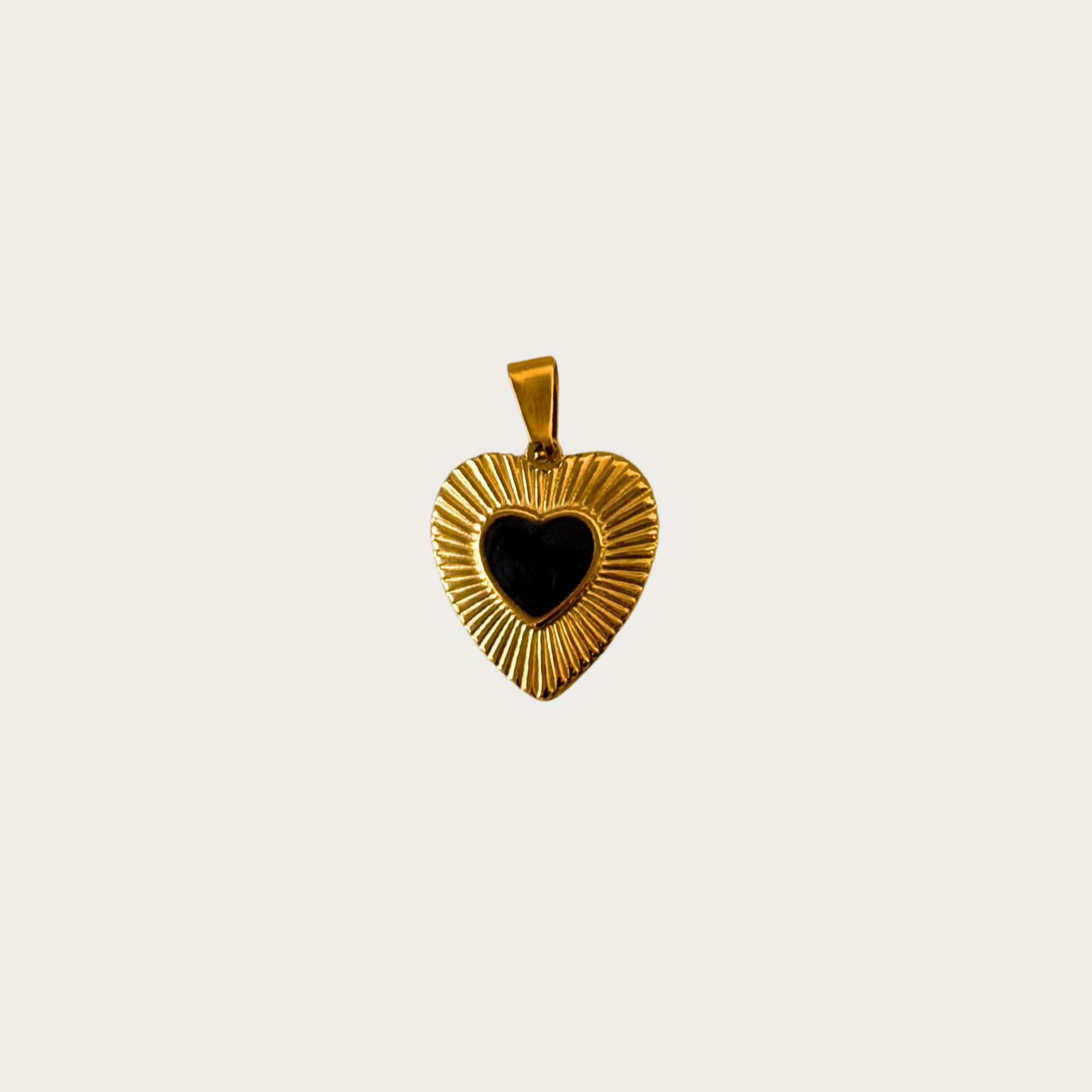 Measuring 26mm x 23mm, the charm features a beautifully textured, sunburst-style heart frame with a glossy resin heart at its centre. The contrast creates a rich, luxurious finish—eye-catching yet still effortlessly wearable.