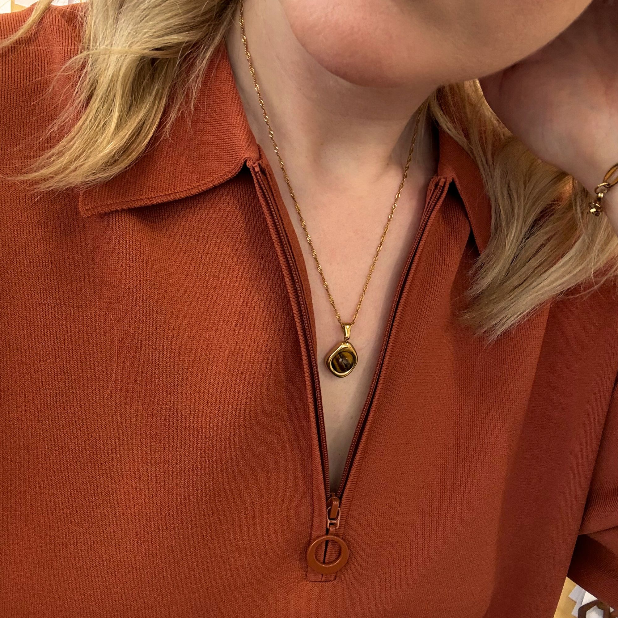 Step into the warmth of autumn with the Monroe Tiger Eye Necklace, a piece that captures the golden glow of the season.