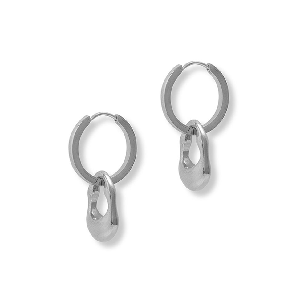 A classic stainless steel hoop is paired with an irregular, sculptural charm, fluid in shape and designed to move subtly with you.